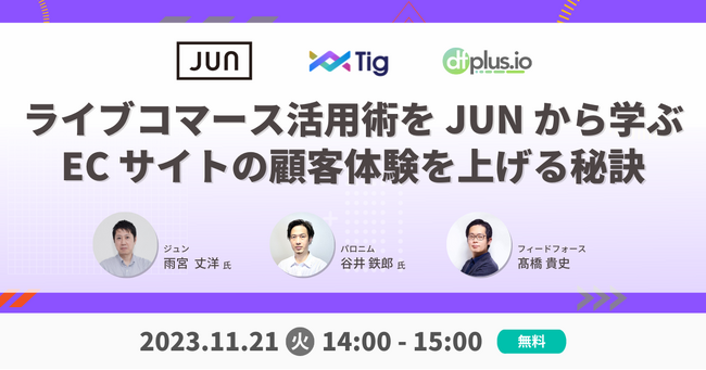 株式会社フィードフォース(所在地:東京都港区、代表取締役:塚田 耕司、以下「フィードフォース」)が提供する、マーケターのためのデータフィード管理ツール「dfplus.io」は、無料オンラインセミナー「ライブコマース活用術を JUN から学ぶ EC サイトの顧客体験を上げる秘訣」を 2023 年 11 月 21 日(火)に開催いたします。