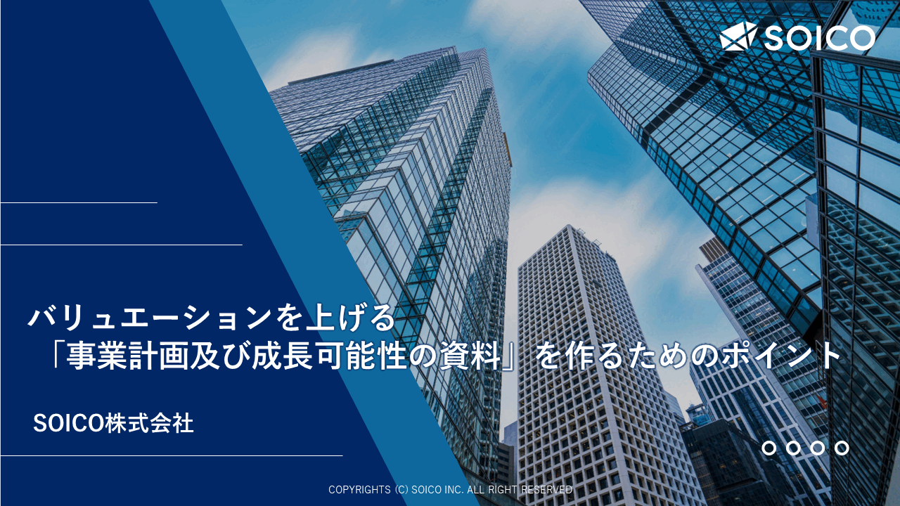 「バリュエーションを上げる「事業計画及び成長可能性の資料」を作るためのポイント」SOICO株式会社が解説資料を無料公開しました!