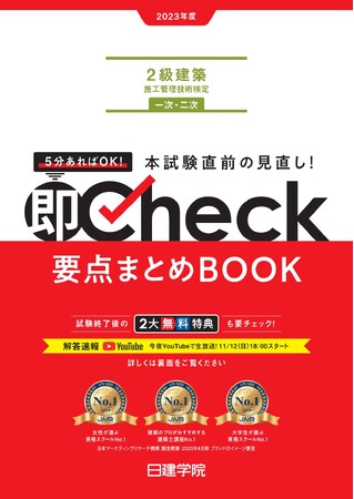 資格取得支援スクールの日建学院を運営する株式会社建築資料研究社(所在地:東京都豊島区、代表取締役社長:馬場栄一)は、2023年11月12日(日)に実施される令和5年度2級建築施工管理技士 一次検定の試験直前対策として、2023年11月12日(日)早朝8:00より「2級建築施工管理技士一次検定(後期)直前Check【能力編】」をYouTube LIVE配信いたします。