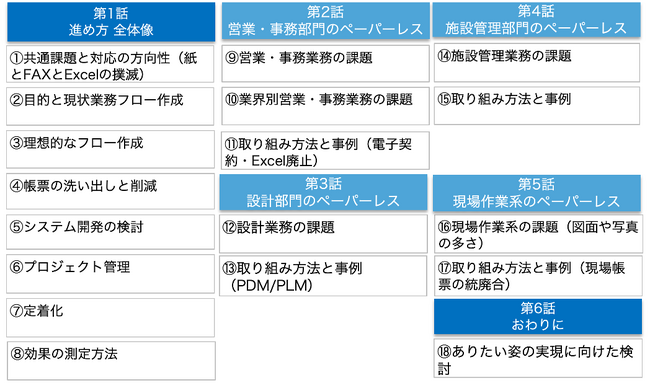 部門が異なると進め方や注意すべき点が大きく異なるのがペーパーレスプロジェクトです。紙が多く発生している営業・事務・設計・施工管理部門に着目し、各業務課題から取り組み方法について事例を交え解説します。