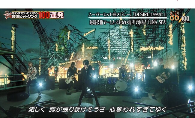 ことし6月に放送した音楽番組『テレ東音楽祭』では、ステージの背景に巨大なLEDディスプレイを設置し、そこに3DCGで作った工場から立ち上る炎を映すことで、アーティストがその場所でリアルに演奏しているかのようなシーンを演出しました。