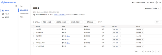 freee株式会社(本社:東京都品川区、CEO:佐々木大輔)はfreee認定アドバイザーの顧問先でfreeeのプロダクトをご利用いただいている顧問先の情報管理ができる「freee顧問先管理」をリニューアルし、本日より「freee顧問先管理β版」として提供を開始しました。