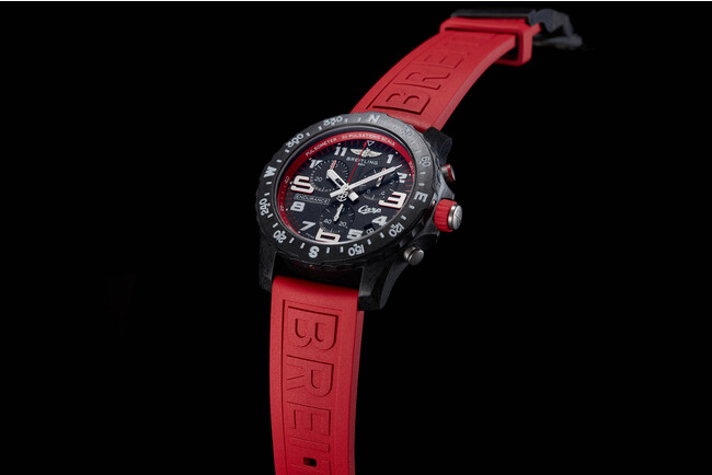 ブライトリング エンデュランス プロは、直径44ミ リのケースに超軽量素材であるブライトライト(R)を採用。チタンのわずか1/3という軽さを実現しています。内部には、温度補正スーパークォーツ(TM)ムーブメントを搭載し、その精度は従来のクォーツの10倍。快適な着け心地で高精度であるうえ、ファッション性も豊か。カラフルなバリエーションを揃え、日常での着用にもセンスが光ります。