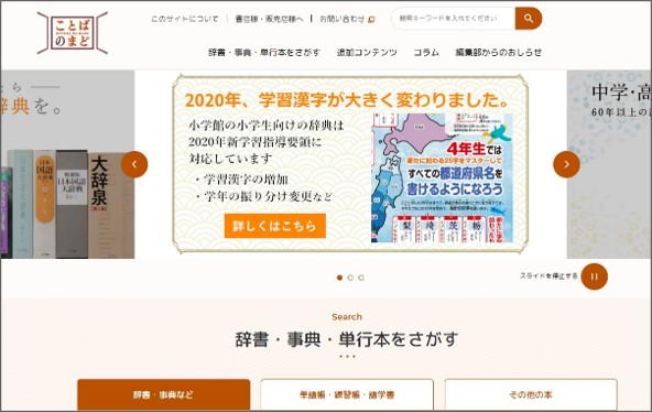 「ことばのまど」では『大辞泉』のほか、小学館の国語・漢和・類語など国語系、英語やその他外国語系の辞書の情報を発信しています。
