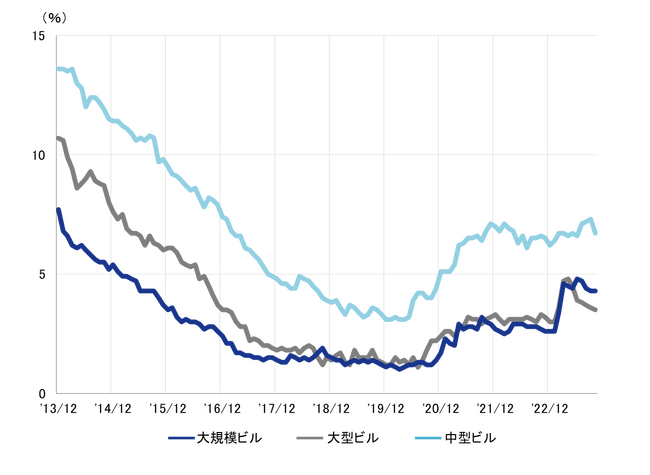規模別 空室率:「中型」大幅に低下し、6%台へ