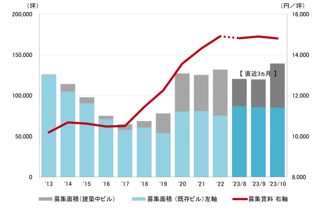 募集面積 2023年3月以来の13万坪台へ増加