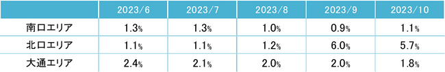 全規模ビル 主要エリア 空室率:「大通」2022年2月以来の1%台へ低下