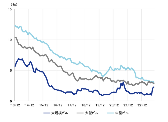 規模別 空室率:「大型」低下し、6ヵ月ぶりに2%台へ