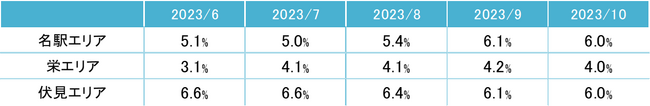 ※1:主要エリア=名古屋市名駅エリア・栄エリア・伏見エリア