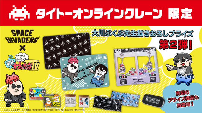 大好評御礼! SPACE INVADERS×わしゃがなTV タイクレ限定プライズが、復刻プライズと大川ぶくぶ先生の描き下ろし新プライズを加えて登場!11月16日(木)21時より稼働開始!