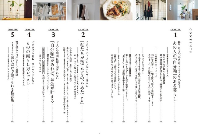 本書では、お手本にしたい「自分軸」のある暮らしの実例や、ミニマリストたちの手放し方のコツや暮らしの工夫、ファイナンシャルプランナーのお金の整え方などを通して、今日からすぐに実践できる暮らしのコツをお届けします。