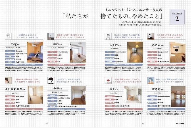 ミニマリストとしてSNSを中心に人気の8名に、手放し方のコツや、暮らしの工夫をお伺いしました。今すぐ真似できるリアルなアイデアが満載です。