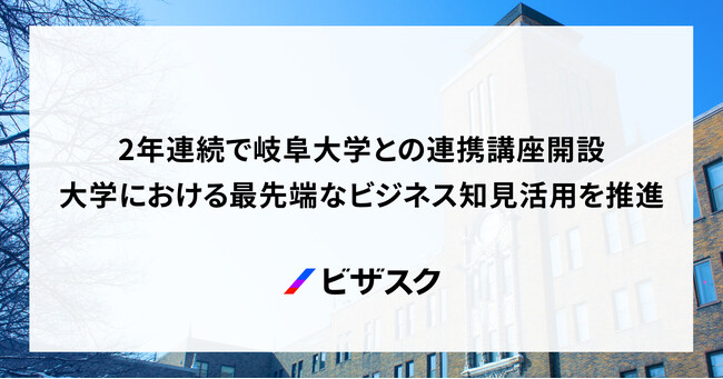日本最大級のナレッジプラットフォームを運営する株式会社ビザスク(以下、当社)は、昨年に引き続き、当社登録エキスパートが講師(※)として登壇する岐阜大学との連携講座を開設いたしました。今年は初の完全現地開催にてワークショップを織り交ぜた講義を行い、学生にとって最先端かつリアルなビジネス知見に触れる機会となりました。