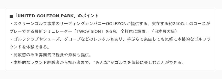 ▶「UNITED GOLFZON PARK」公式 https://www.hmv.co.jp/store/unitedgolfzonpark/