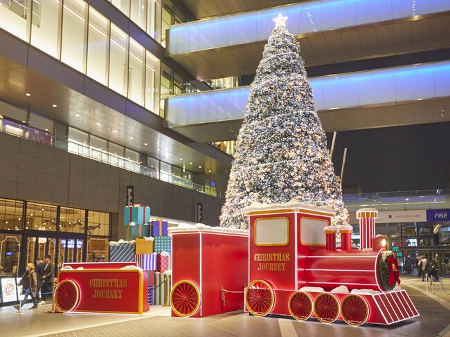 サンタクロースの旅へ発着駅をイメージしたクリスマスツリーは、降り積もった雪がキラキラと輝いているかのような装飾が施され、クリスマスツリーの前には、実際に乗り込んで記念写真が撮れる特別列車のフォトスポットが登場。さらに、“CHRISTMAS JOURNEY”をテーマに、tofubeats氏が書き下ろした楽曲「Lights」とともに、白とゴールドの螺旋状のイルミネーションが交互に点滅する「音と光の特別演出」を実施するほか、 tofubeats氏の楽曲とコラボレーションしたオリジナルムービーが視聴できるスポットもあります。