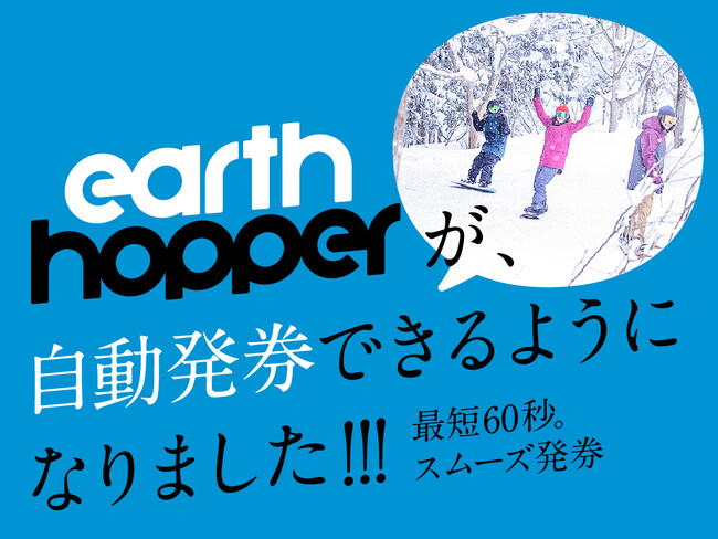 今回のスキーデータとの連携により、アースホッパーユーザーは、自動発券機端末を導入済みの施設では窓口に並ばずにアースホッパー利用での1日券を発券をすることが可能となります。