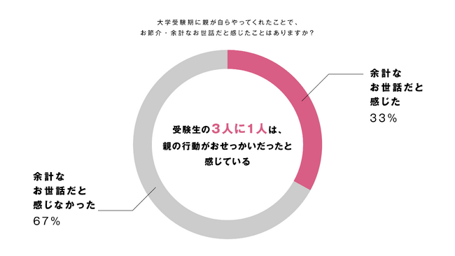 大学受験を経験した子どもに親の行動について正直な気持ちを尋ねたところ、およそ33%の受験生が実はお節介・余計なお世話だったと感じていた、と答えました。