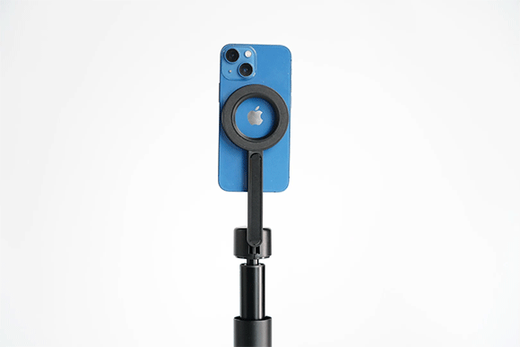 スマホをMagSafe対応の丸い台座で簡単固定するだけで、自撮り棒として使用できます。