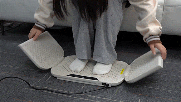 3つのグラフェンヒーターを採用し、足を置くだけて足裏を心地よく温められます。使い方によって、足先だけでなくふくらはぎから膝まで足全体を幅広く温めます。