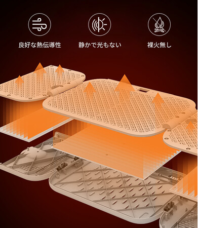 グラフェンヒーターは速暖性に優れているので、電源を入れてから素早く足元を温めます。設定した段階に応じて一定の温度を維持し、いつでも安定した温かさが得られます。