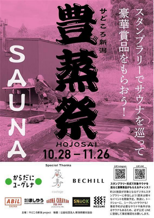 サどころ新潟 project(代表:サウナ宝来洲 杤堀耕一 事務局:株式会社ほしゆう 海老塚健史)が主催する、日本最大規模 のサウナ施設スタンプラリー「豊蒸祭(読み:ほうじょうさい) 2023」が、10月 28 日にスタートしました。