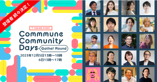 コミューン株式会社(本社:東京都品川区、代表取締役CEO:高田優哉)は2023年12月5日(火)・6日(水)の2日間に渡り、コミュニティに関わる全ての方に向けた無料オンラインカンファレンス「Commmune Community Days ~Gather round~」を開催します。この度、Commmune Community Days の追加登壇者が決定しました。