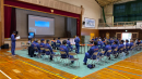 財光寺中学校体育館で、簡易テントの組み立てなどの体験訓練