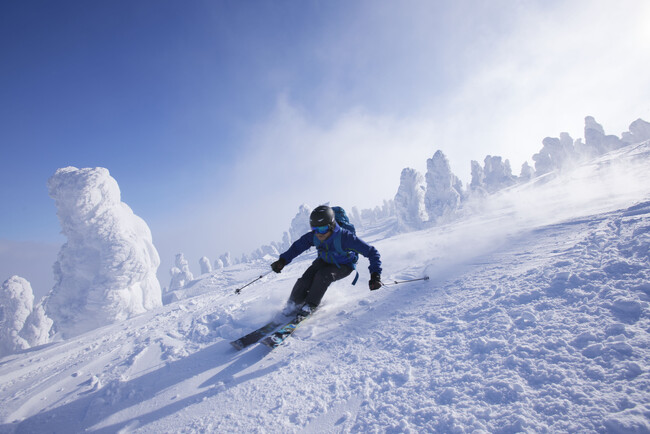 十和田八幡平(はちまんたい)国立公園内に位置する八甲田は、迫力ある樹氷と上質なパウダースノーを同時に楽しめる世界中のスキーヤーにとって憧れの場所です。ロープウェーで山頂まで上がると、そこには見渡す限りの真っ白な雪景色とそびえ立つ樹氷など日本が世界に誇る絶景が広がります。パウダースノーに板を浮かせ、雪煙を上げながら樹氷の間を縫うように滑る感覚は言葉では表現できない気持ちよさです。八甲田は、時期や天気、気温、風、積雪など、その日の条件によって見える景色が異なり、滑走コースも長く複数のコースがあるため、一日だけでは楽しみ尽くせません。そこで、八甲田のパウダースノーを存分に楽しんでほしいと考え、3泊4日の宿泊プランを企画しました。