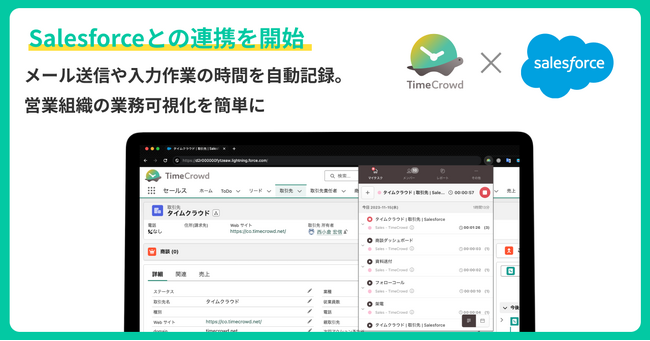 時間管理ツール「TimeCrowd(タイムクラウド)」は、Salesforce, Inc.が提供する顧客管理システム「Saleforce」との連携を開始しました。