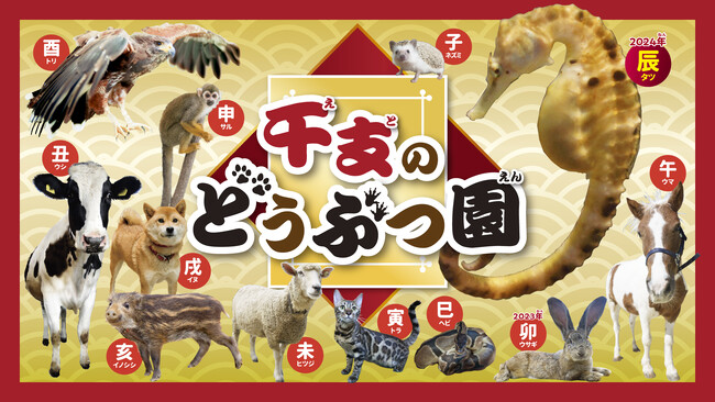 ハリネズミ【子】・ホルスタイン【丑】・ベンガルネコ【寅】・フレミッシュジャイアント【卯】・タツノオトシゴ【辰】・ボールパイソン【巳】・ポニー【午】・ヒツジ【羊】・リスザル【申】・ハリスホーク【酉】・柴犬【戌】・イノシシ【亥】