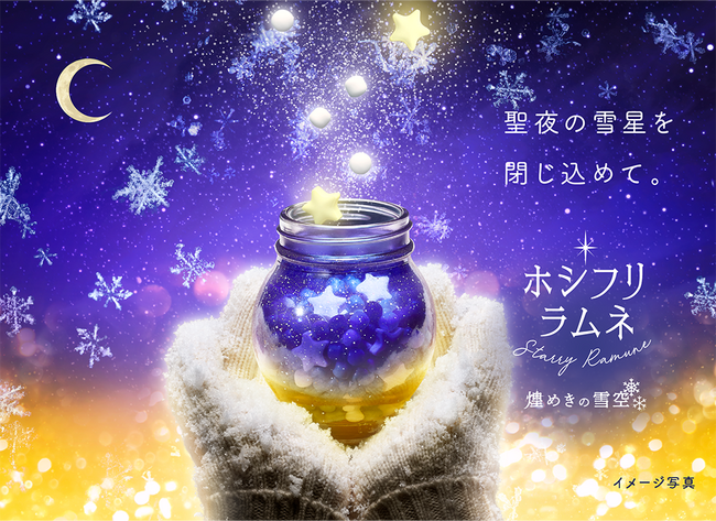 《「煌めきの雪空の淡雪ソーダ味」が新登場!瓶は“雪が舞う星空に街の煌めきが溶け込む”限定カラーに》