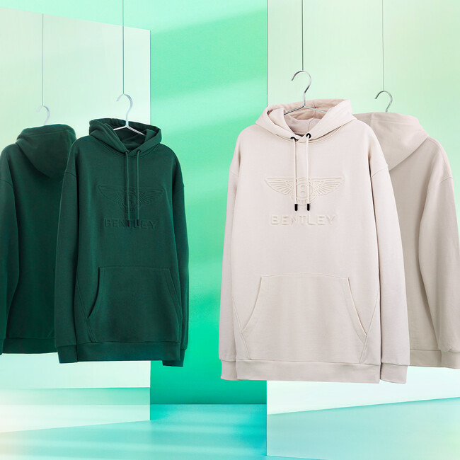 究極のステルス・ラグジュアリーを求めるなら、ベントレーのエンボス・パーカーに勝るものはありません。オーガニックコットンを使用し、ゆったりとしたボクシーフィットで、胸には同系色のベントレーロゴが刺繍されています。クラシックなブラック、ソフトなリネンクリーム、バーダントグリーンの3色展開で、スタイリッシュでありながら着心地も抜群です。