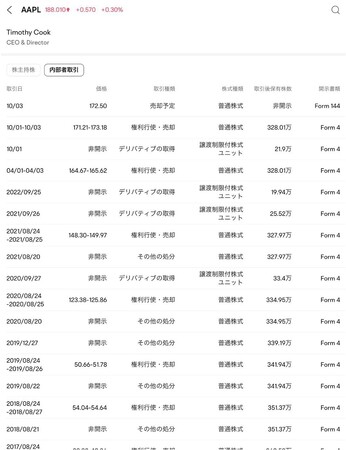 ※内部者情報は、SECに提出された報告書を基に提供されます。