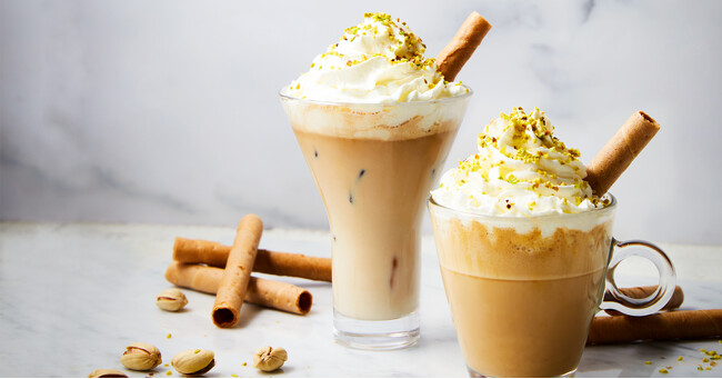 今回新登場する「ドルチェプレッソ カンノーロ」は、小麦粉を使った生地を筒状にして油で揚げて作ったサクサクの皮の中に、チーズクリームを詰めた、シチリア発祥のイタリア伝統菓子『カンノーロ』をイメージしたイリーオリジナルドリンクです。イリーエスプレッソにカンノーロのチーズクリームを表現したまろやかな“マスカルポーネバニラミルク”を合わせ、サクサクの食感を楽しめるシガークッキーとピスタチオをトッピングしました。