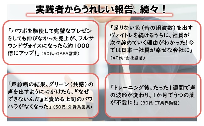 自分の声の変化を「可視化」できる“声診断”ヴォイトレで仕事も人生もうまくいく! 「声」を変えるだけで、約1000倍に売上アップした! パワハラがなくなった! 等、実践者からの驚きの声が続々!