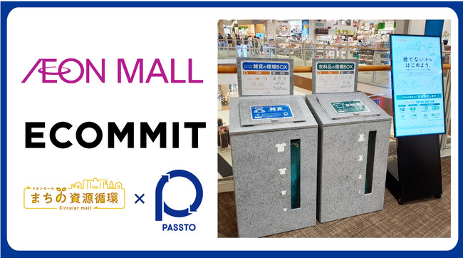 循環型社会に向けた不要品の回収・再流通のインフラを構築する株式会社ECOMMIT(本社: 鹿児島県薩摩川内市、代表取締役CEO:川野 輝之、以下「ECOMMIT」)は、イオンモール株式会社(本社:千葉県千葉市、以下「イオンモール」)と連携し、イオンモールの展開する「捨てないからはじめよう。」をコンセプトに行う資源回収プロジェクトにおいて、ECOMMITの提供する回収・選別・再流通を一気通貫で行う「PASSTO」のスキームを活用した不要品回収を行います。