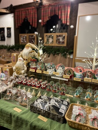 海外から輸入したクリスマス商品を販売します。クリスマスならではのオーナメントやスノードームなど、煌びやかなアイテムが並びます(予約不要、当日参加可能)。