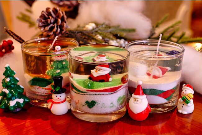 クリスマス仕様のオリジナルジェルキャンドル作りを、教員と一緒に英語で体験いただけます(事前予約優先・先着順)。