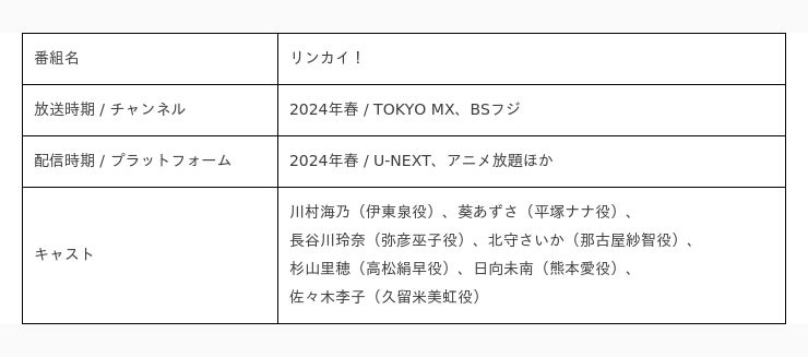 2024年春、TOKYO MX&BSフジにてアニメ放送決定!U-NEXT&アニメ放題ほかでの同時配信も決定!『リンカイ!』 イベントにてストーリーとティザービジュアルを公開