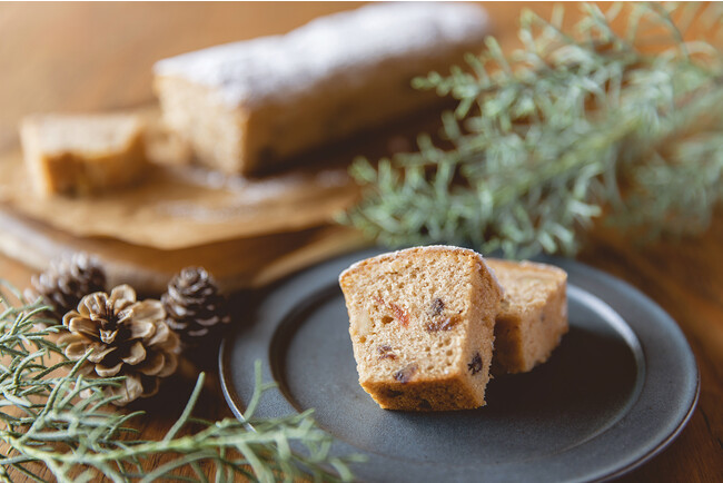 伝統的なシュトーレンの「じゅわっとかたい食感」が苦手という方もいらっしゃるはず。come×comeのシュトーレン風パウンドはふわっと柔らかいのに、素材の力強い味がしっかり感じられる大人の仕上がり。シュトーレンが苦手な方にこそ、ぜひ食べてほしい一品です。