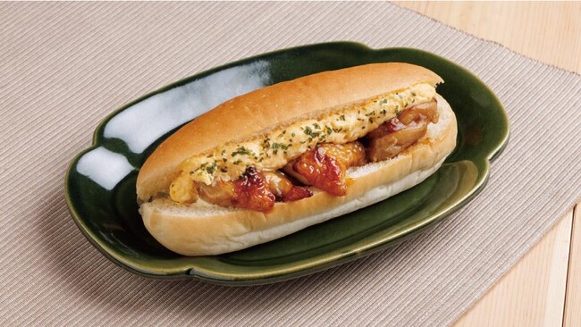 「照焼チキン」とタルタルソースを挟んだロールパンです。