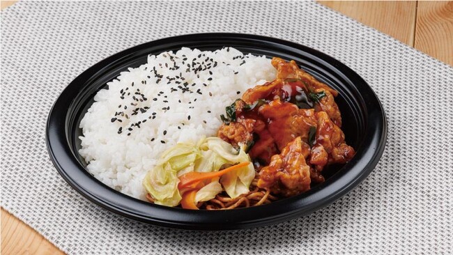 鶏肉を甘辛タレで仕立て、野菜炒めと合わせたチルド弁当です。