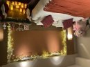 高さ約2ⅿのクリスマスツリーと、20体以上のスノーマンたちが客室を楽しい空間に演出。常設しているプロジェクターを使って鑑賞会をしたり、さまざまな楽しみ方でお過ごしいただけるお部屋。テントやシェードが設置されたグランピングルーム。クリスマスを楽しみながら、キャンプ気分でお過ごしいただけます。