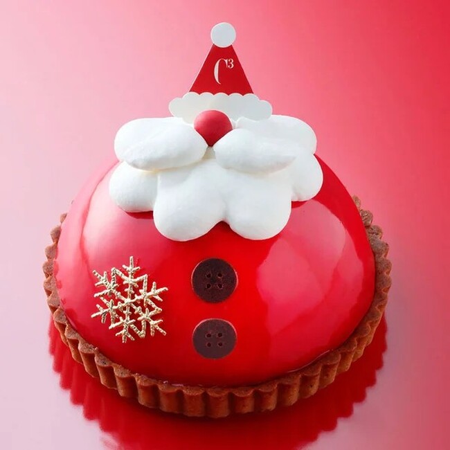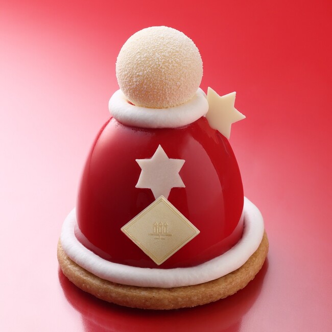 まろやかな甘さのマスカルポーネムースと甘酸っぱいベリーのポンシュとジュレの相性が抜群です。イチゴ味の真っ赤なグラサージュとシャンティクリームの髭でサンタクロースをデザインしました。