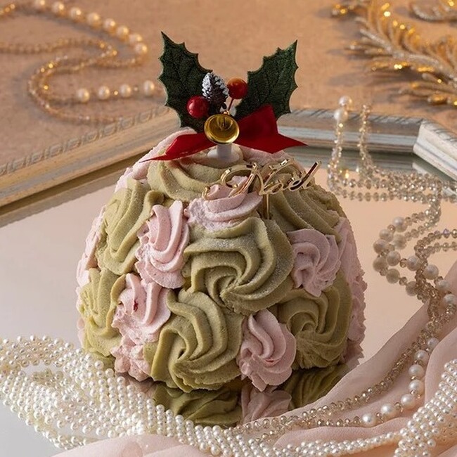 濃厚なピスタチオとフランボワーズの華やかな酸味をお楽しみいただけます。2種のクリームで可愛く飾りました。