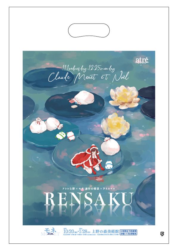 株式会社アトレ(本社:東京都渋谷区/代表取締役社長:高橋 弘行※)が運営するアトレ上野(所在地:東京都台東区)では、2023年12月1日(金)よりアトレ上野のクリスマスビジュアルと「モネ 連作の情景」出展の『睡蓮』がプリントされたオリジナルショッピングバッグをプレゼントいたします。