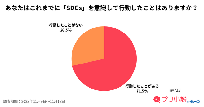 「SDGs」という言葉を聞いたことがあると答えた女子中高生のうち、71.5%の女子中高生が「SDGs」を意識して行動したことが「ある」と回答しました。