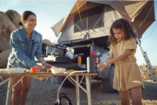 アウトドアでは、食器を洗ったり、お湯を沸かしたり、手を洗ったり、歯を磨いたりと、”水” を使用する場面がいくつもあります。 ポータブル電動給水栓 HYD-WFとウォータージャグ HYD-J11は、そんなアウトドアライフで必需品の”水” を、便利に、安全に、そして衛生的に供給・使用することが可能です。