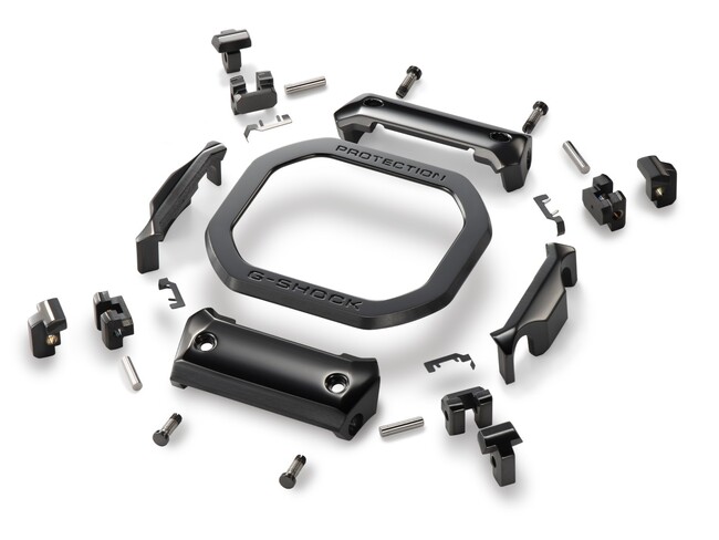 “MR-G”は、最先端技術や熟練の金属加工技術を採り入れ、「究極のタフネスウオッチ」を追求した“G-SHOCK”の最上位シリーズです。昨年3月に発売した初号機を継承する角型フォルムの「MRG-B5000」は、パーツを細分化し緻密な研磨を施したベゼルに、高硬度合金素材「COBARION(R)」を採用するなど、熟練の研磨と先端素材を用いた最高峰モデルとして好評を博しています。