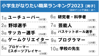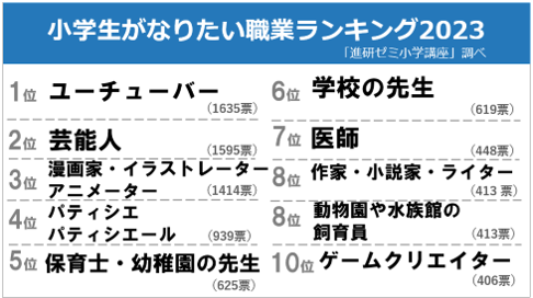 ■なりたい職業・将来に向けて勉強したいことランキング:4年連続「ユーチューバー」が首位、学びたいのは「英語」